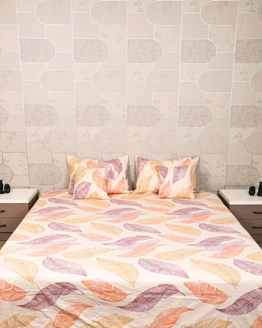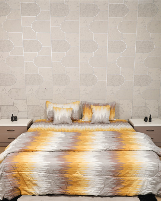 MARIGOLD – 6 Pc Bedset | Bedsheet, Comforter, Pillow Cover & Cushions (Sunset)