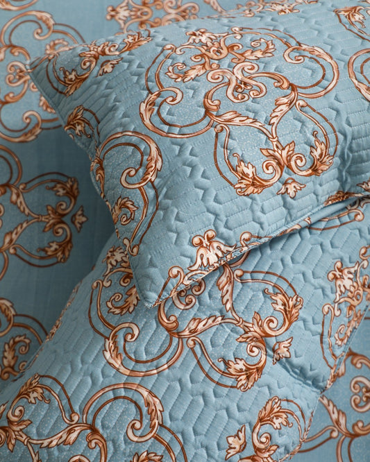 ANTHURIUM- King Size Bedsheet with Quilted Pillow Covers (Blue)