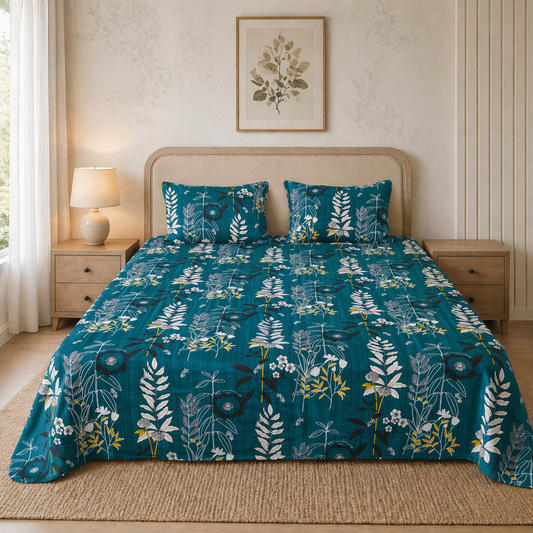 Collection: Anthurium King Size Bedsheet with Quilted Pillow Cover