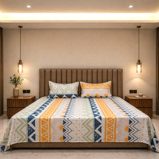 King Size Bedsheet- Geo Fusion