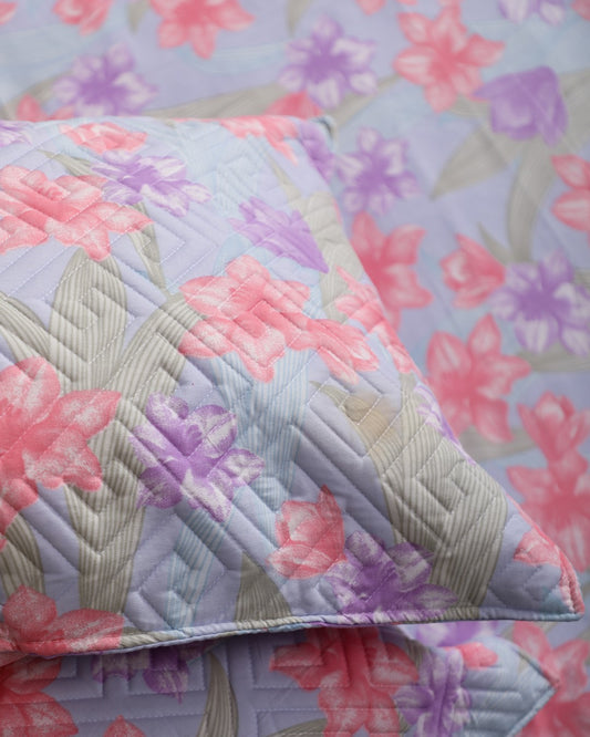 ANTHURIUM- King Size Bedsheet with Quilted Pillow Covers (Lavender)