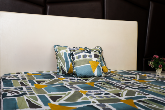 Baby Breath - SINGLE BED 3PCS BED SET (Green Blue Pattern)