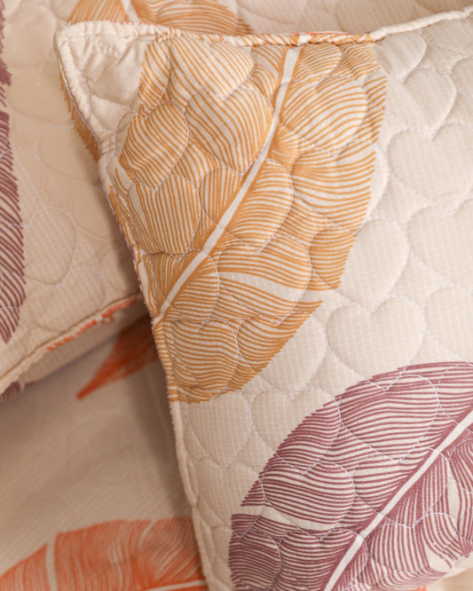 MARIGOLD – 6 Pc Bedset | Bedsheet, Comforter, Pillow Cover & Cushions (Big Leaf)
