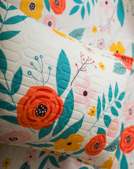 Anthurium - SINGLE BEDSHEET WITH QUILTED PILLOW COVER (Multi Floral)