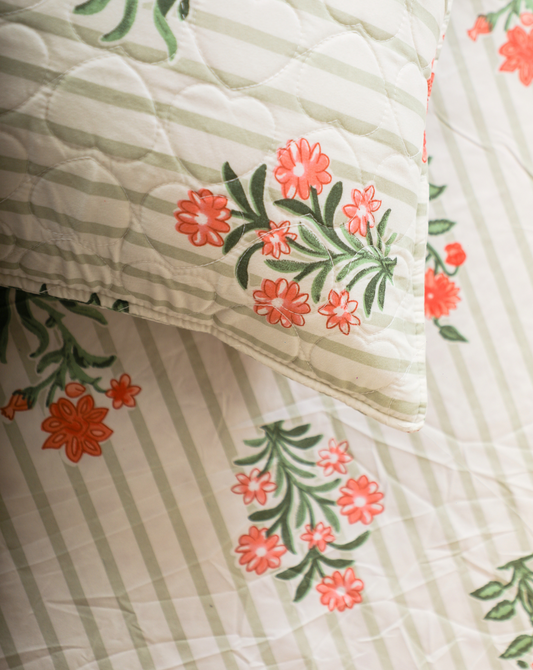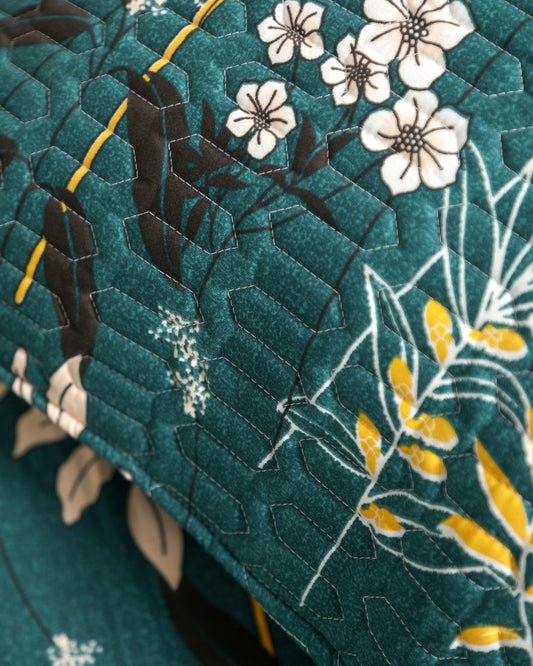 Anthurium -SINGLE BEDSHEET WITH QUILTED PILLOW COVER (Lining Green)