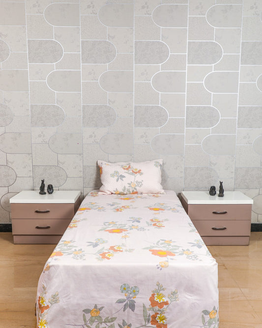 Anthurium - SINGLE BEDSHEET WITH QUILTED PILLOW COVER (Multi Floral color )