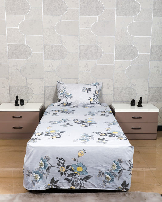 Anthurium - SINGLE BEDSHEET WITH QUILTED PILLOW COVER (Grey Blue color)