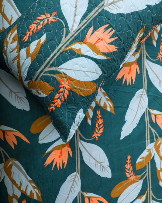 Anthurium - SINGLE BEDSHEET WITH QUILTED PILLOW COVER (Dark Green Colour)